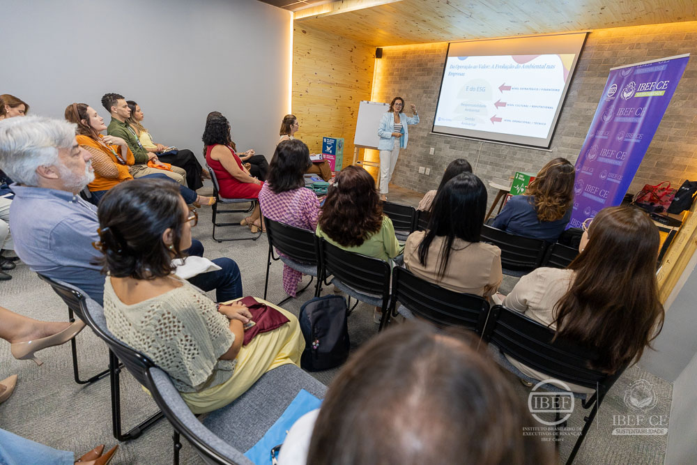 O evento “Letramento ESG: Do Conceito à Prática” foi conduzido por Darla Lopes, líder do IBEF Sustentabilidade, e reuniu especialistas para debater práticas ambientais na agenda ESG da agenda ESG. Com palestras de Suellen Galvão e Maria Helena Botelho, abordou práticas sustentáveis e gestão responsável, promovendo educação e conscientização corporativa.